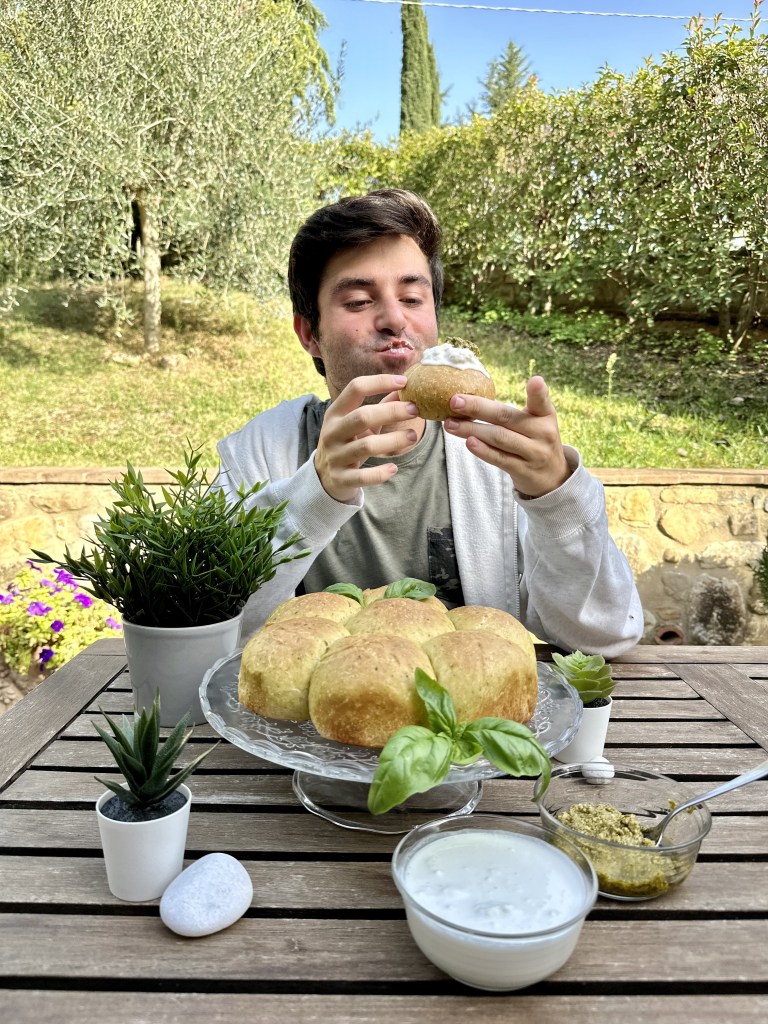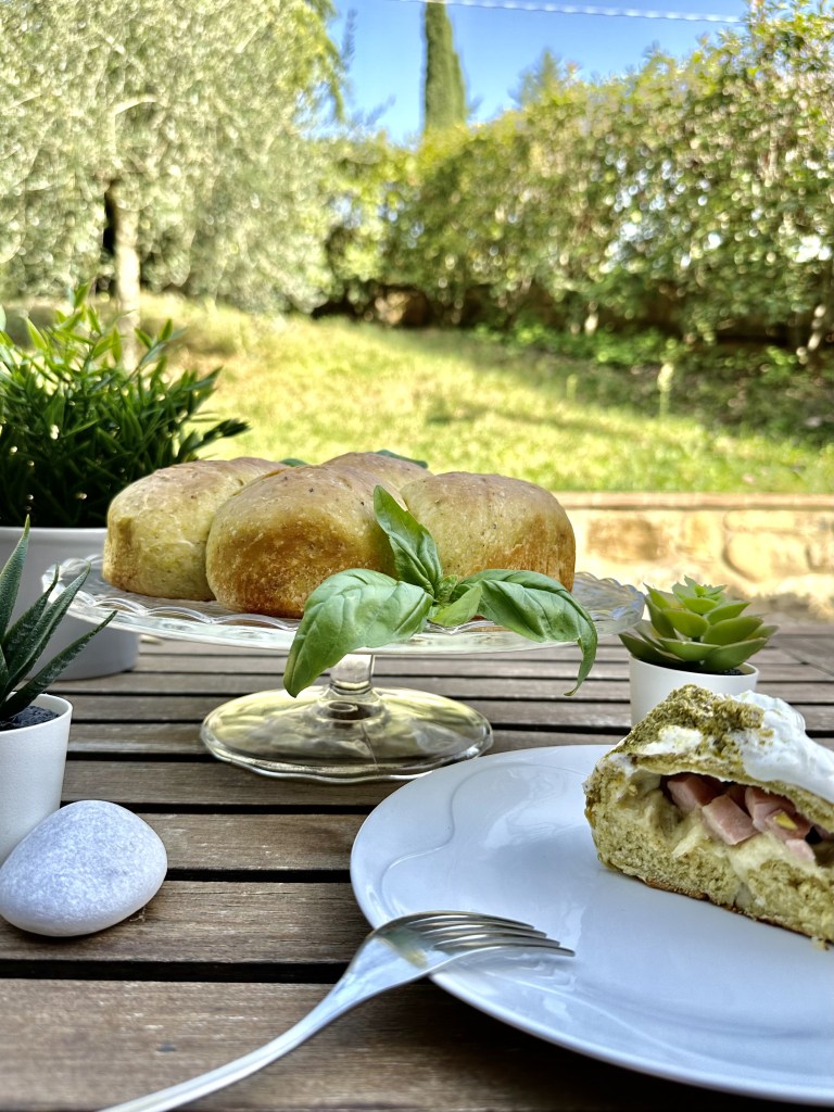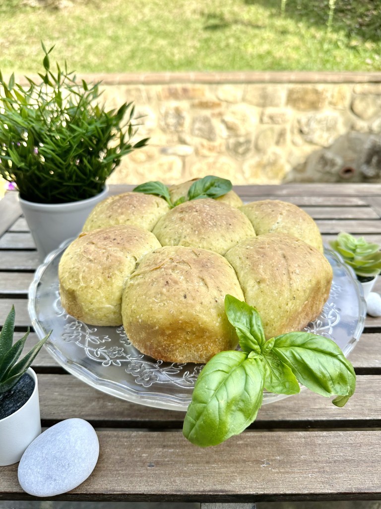 Per rendere il nostro danubio più grassoso io non ho fatto altro che prendere altre due piccole ciotoline e le ho riempite una con la stracciatella e l’altra col pesto. Una goduria, santo cielo! Fatemi sapere se replicherete questa ricetta che non vedo l’ora 😛