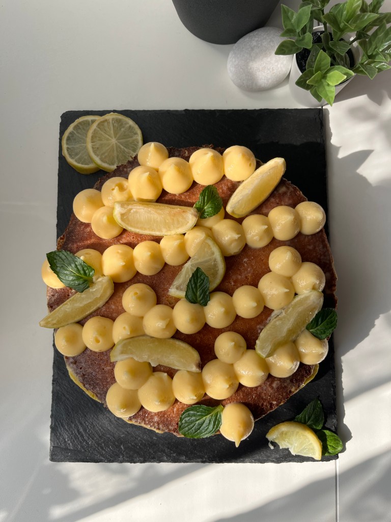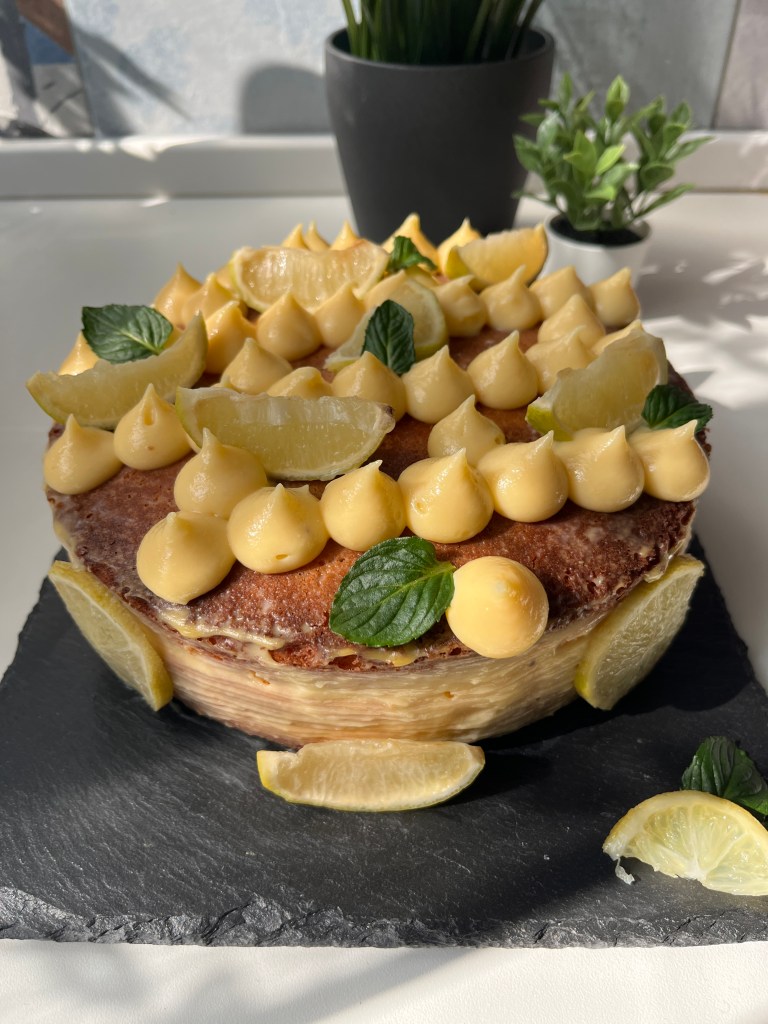 Leggere attentamente qui ragazzi che vi spiego come l’ho assemblata: una volta che il pan di spagna si è raffreddato, lo tagliamo in 3 strati oppure di più o di meno, insomma vedete voi quanti ne riuscite a fare. La parte alta della torta che avete appena tagliato, la usate come base, la bagnate con qualsiasi cosa volete voi, io vi consiglio della semplice acqua e zucchero e magari potete aggiungere un po’ di succo di limone) e mettiamo lo strato di crema allo yogurt e lime. Ricompiano con un altro strato di pan di spagna bagnato sempre con ciò che vogliamo, di nuovo crema allo yogurt e lime e chiudiamo la nostra torta con la base del pan di spagna in modo che la parte liscia ottenuta sotto ci faccia da superficie liscia per poter decorare bene coi ciuffi di crema. Io ho decorato poi con degli spunzoni orizzontali o verticali dipende da come giriamo e guardiamo la torta ahaha e rifinita di lato sempre con la stessa crema usando un pennello da cucina. Finite con dello zucchero a velo se volete, spicchi di lime e foglioline di menta à gogo