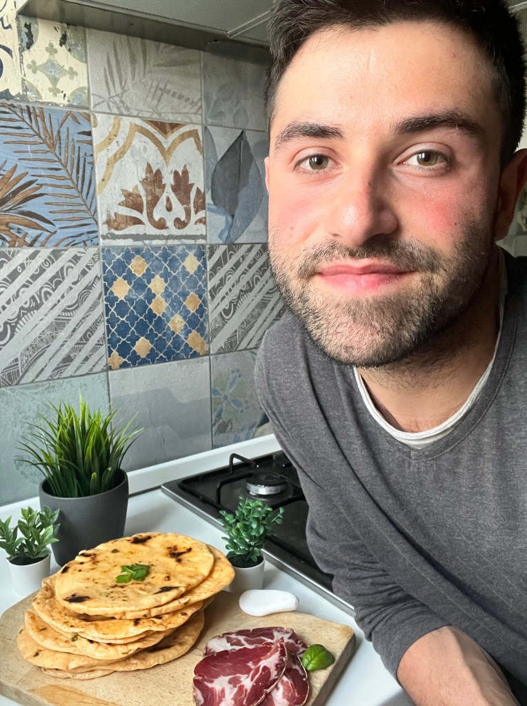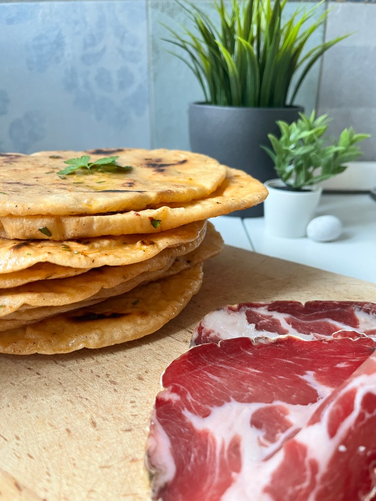 Ora boh spero di non aver sbagliato ricetta, ma comunque fa lo stesso, mal che vada lo chiamerò “piadinato al concentrato di pomodoro” perché esatto, so proprio questi gli ingredienti protagonisti di questo tipo di pane di origine indiana spennellato con del burro, mangiato spesso con delle verdure di accompagnamento ed è proprio quello che mi ha fatto Mukesh quando so andato a Milano a trovarlo. Nella mia versione ho voluto tingerlo con del concentrato di pomodoro perché avevo voglia di farlo rosso ecco. Per fare sti cosini di pane bellini bellini, vi serviranno dello yogurt, del concentrato di pomodoro, padella e le tue mani o la tua planetaria. È semplice da fare e il miei coinquilini l’hanno assaggiati con del chili messicano e chi con della salsiccia e poi io con del capocollo e basilico. Buono è dir poco. Canzone di accompagnamento: “DANGEROUS” dei TEMPEST.