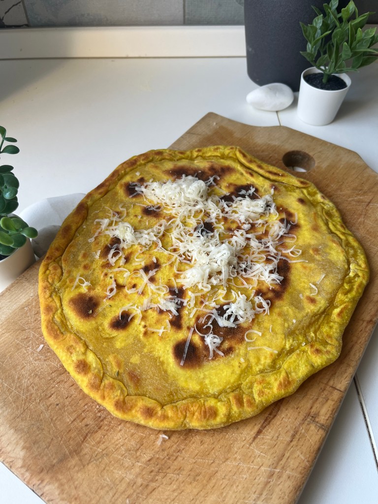 Ultimamente a Venezia ha fatto parecchio caldo, più che caldo direi umido e quindi il forno eviterei ancora di accenderlo ed è per questo che, tadan, oggi ho sfornato (spadellato) questa ricetta semplice senza lievito, senza forno e senza nulla manca poco. È un impasto semplice, come quello della pizza, solo che al posto del lievito, c’è un po’ di curcuma in più per decorare di giallo e per dare quel piccolo sapore in più. Il ripieno che io ho scelto, come sempre, dipende dagli sconti che ci sono alla Lidl e questa volta è toccato ai tris di formaggi della Milbona che includevano dell’emmental, del tilsit e dell’edam. Suppergiù con questa dove vi vengono 2 belle piadinone grosse, più un piccolo pezzettino di impasto che potete cuocerlo anche da solo volendo. Io ho ascoltato comunque “ETA” delle NewJeans, devo dire che è proprio orecchiabile come canzone 😋 Ah, riguardo al ripieno, potete letteralmente farlo come più volete, lo sapete che per me c’era quello in sconto, ma voi giocate con qualsiasi affettato volete 😎
