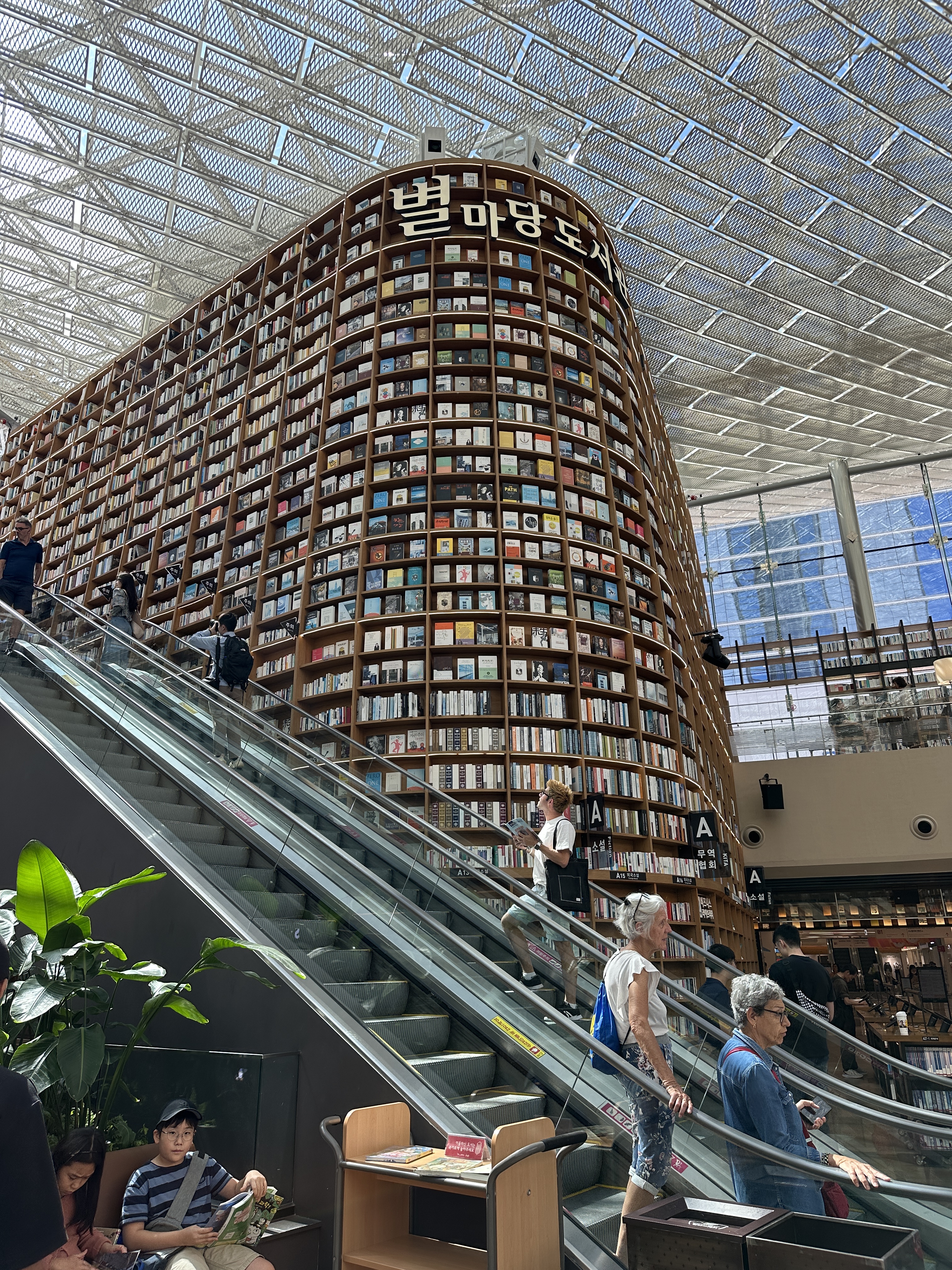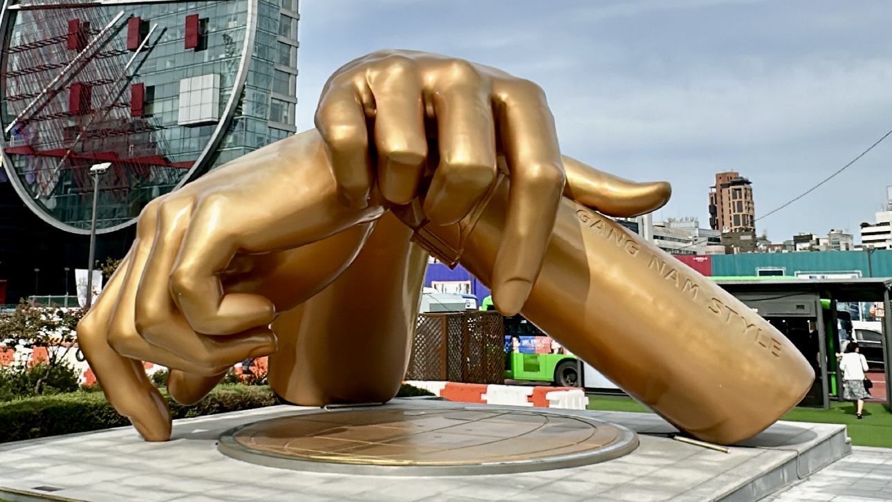 Oggi giornata semi leggera di nuovo: solita colazione ancora e siamo andati di nuovo al Coex Mall, ma stavolta di giorno, proprio per vedere come fosse la biblioteca coi raggi solari ed inutile dire che forse la preferisco di notte. Di giorno ci so troppi turisti sulle scale mobili, a sedere ed in qualsiasi altro punto carino per farsi mille mila foto, ma comunque li capisco… è troppo bella. Per il pranzo abbiamo mangiato qui, di nuovo, io ho preso il pollo fritto e Linda i tteokbokki ancora, ma la cosa che ci è garbata di più sono state le paste sfoglie a forma di pesciolini – io con il cioccolato e Linda con la panna – suppergiù costano 3.000₩ ma ne valgono davvero la pena e sempre quel reparto del Coex è stracolmo anche di dolci (quindi andateci con cautela), ah – visitate anche il YP Books che ci sono un botto di album a poco prezzo, forse uno dei più economici in giro. Usciti dal Coex siamo riusciti a veder anche la statua di Gangnam Style, bellina un botto, e non era minimamente affollata e ho incontrato anche persone che mi hanno chiesto di fargli i video mentre ballavano, ganzissimi. L’ho fatto pure io. Poi abbiamo fatto anche un bel giretto alla K-Star Road e ho visto tutte le statuette dei K-Pop groups belline belline e guarda caso il bus vi fa scendere davanti a quella dei BTS. Gangnam comunque è carina tutta devo dire: come sempre ci sono un botto di negozi e di solito il negozio meno costoso di skincare – ma mai quanto Daiso ricordate – si chiama The Saem, di solito ci sono un botto di sconto tipo paghi 10 ma te ne diamo 20, una cosa così ecco. Io qui ci ho preso due creme per il sebo e per la pelle grassa e dopo già una volta avevo una pelle wow che tipo “sedere di un poppante” spostati. Comunque la giornata è finita che eravamo stanchissimi e mentre Linda è tornata in hotel, io sono andato invece alla Decathlon della Lotte World Adventure dove mi sono perso, sì, cioè non sapevo dove andare e alla fine mi hanno detto che Decathlon e gli altri piani erano inutilizzabili, quindi, ho perso tempo inutilmente – ma ho visto un negozio sopra che vende roba stupenda per i giochi come statuette e gadget nintendo e macchine radiocomandate e, va beh, paradiso. La serata è finita velocissimamente e ho cenato con due bibimbap triangolari del mio Emart sotto hotel.