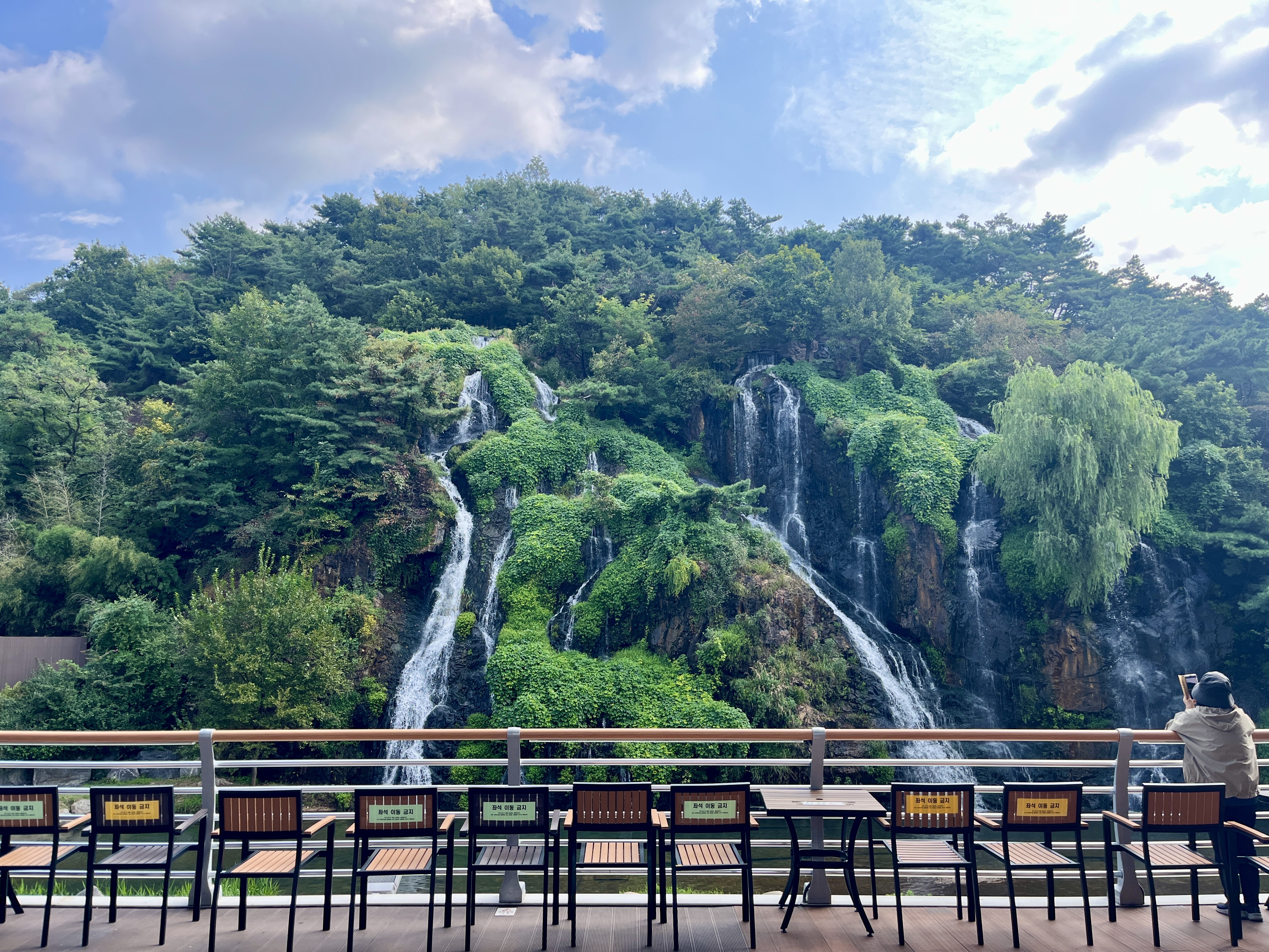 Giornata di oggi invece molto rilassante: finalmente iniziamo a vedere un po’ di cose che ci proponevano Instagram e TikTok ed infatti è toccato a questo bellissimo Cafe – Cafe Pokpo – letteralmente con davanti le cascate, artificiali, ma di uno stupendo atroce. Potete letteralmente sedervi dove vi pare nei posti fuori, basta che non spostate le sedie perché, che ne so c’è scritto così sulle sedie ahah (il video riguardo questo bel giorno, te lo linko qui per YouTube). Dentro al bar ci sono tantissime bevande ed io, come ormai dovreste ben sapere, non faccio altro che provare bevande al gusto di pesca e anche questa non mi ha minimamente deluso (dei prezzi ormai lo sapete che non ve ne parlo quasi più per il semplice fatto che non supererete mai più di 4,00€, quindi ottimo affare). Ah, alcune volte potrete trovare dei pazienti con il camice che indossano le persone ricoverate in ospedale e anche che camminano con la flebo perché, appunto, questa caffetteria si trova quasi accanto ad un ospedale. Dopo esserci fatti un bel po’ di foto siamo ritornati nella zona di Hongdae perché mi era presa una voglia assurda di fare un video dove assaggiavo il Burger King coreano, ed inutile dirvelo, io e Linda ci siamo dati da fare come se non ci fosse un domani ed abbiamo mangiato una meraviglia, buonissima la mozzarella stick lunga 21cm (mangiatela calda e non a fine panino perché sennò non fila manco a pagare oro). Finito anche questo pranzo poco calorico, a Linda gli era presa una voglia di Starbucks, di nuovo, e proprio di fronte al Burger King, Linda ha preso un bel panino vegetariano e una bella tazza di cappuccino che è piaciuto anche a me nonostante non mi garba il caffè. Ci credete che dopo, così dal nulla, ha iniziato una fontana di pioggia? Manco fosse la scena di un K-Drama, al massimo sarebbe stato un film dell’orrore: gente che correva a destra e a manca senza ombrello, bagnatissima, triste, proprio zuppa molle che se tu strizzavi i vestiti di tutti, non avremmo avuto problemi di mancanza d’acqua per un mese. Ed è proprio per questo che i negozianti di Daiso (sì, esatto) erano contentissimi di vendere i loro ombrelli super carini a 2,50€ ed io qui ho svaligiato tutta la roba di Ryan dei Kakao Friends – proprio ogni cosa: bicchiere, spazzolino, bacchette, piatto, sottobicchiere, posate e coperchio – ed ho speso solamente 9,00€ NIENTE. Comunque, sì dai, oggi giornata niente di che, dopo aver aspettato dai Line Friends che smettesse di piovere, abbiamo ripreso il nostro cammino verso il caffè 2D o più comunemente chiamato Greem Cafè. Scrivete proprio così su Naver e finalmente questo posto super instagrammabile, sarà nel vostro feed. Ci sono delle piccole regole comunque da seguire mentre siete dentro, tipo niente foto se prima non acquisti qualcosa, non puoi cambiare posto per averne uno migliore dopo che ti sei seduto e se vuoi fare foto e video all’interno, sarebbe richiesto prima il consenso cosa che vi daranno assolutamente sempre perché sono dei patatini – io comunque ho preso un succo d’arancia buono (Hanrabong Orange Juice a 6.500₩). Un po’ mi è dispiaciuto andarmene via, ma a cena avremmo mangiato tutto cibo proveniente dai CU Store e/o 7-Eleven e così è stato, diciamo una cenetta semplice semplice per una giornata più che bellina.