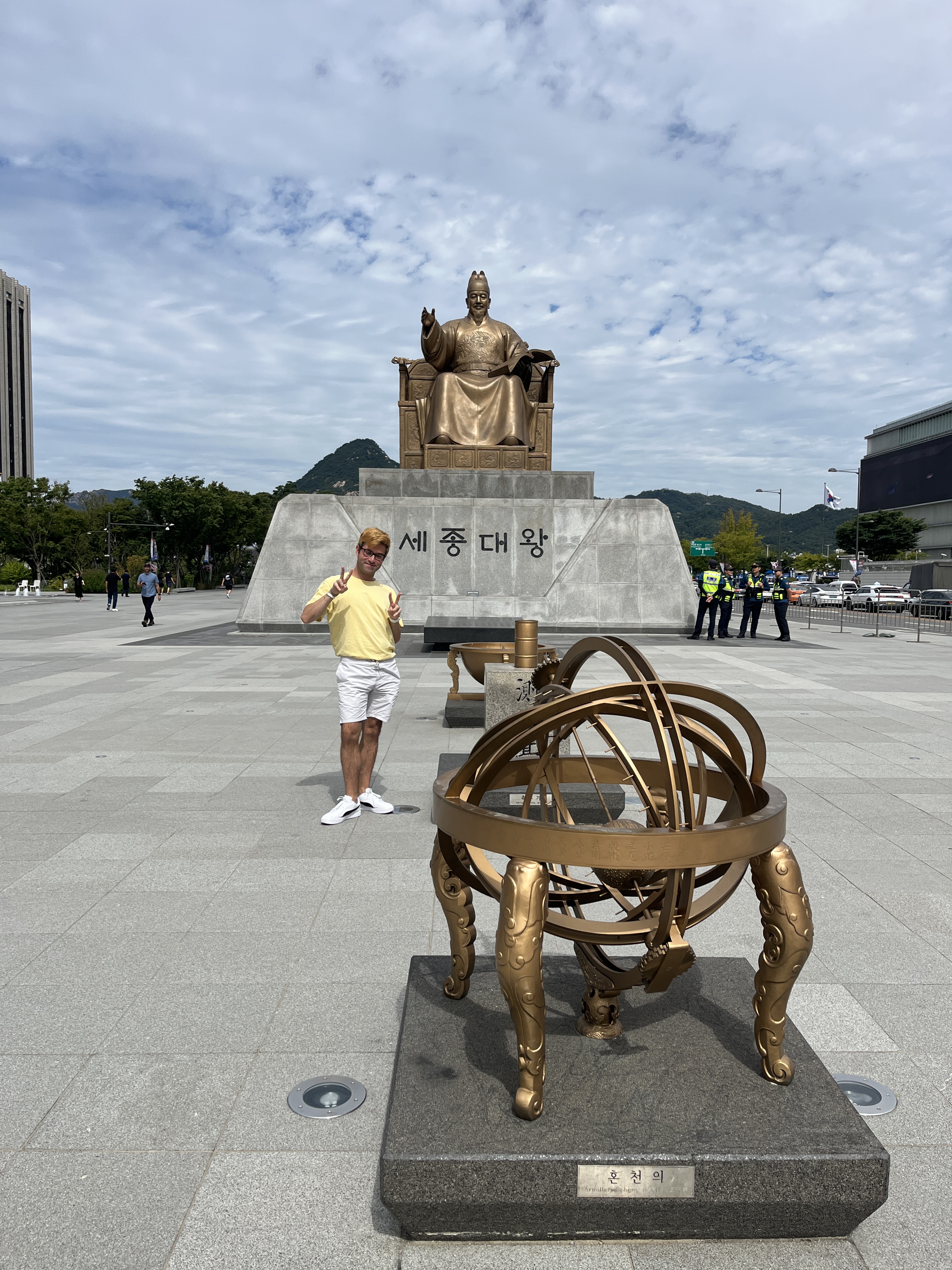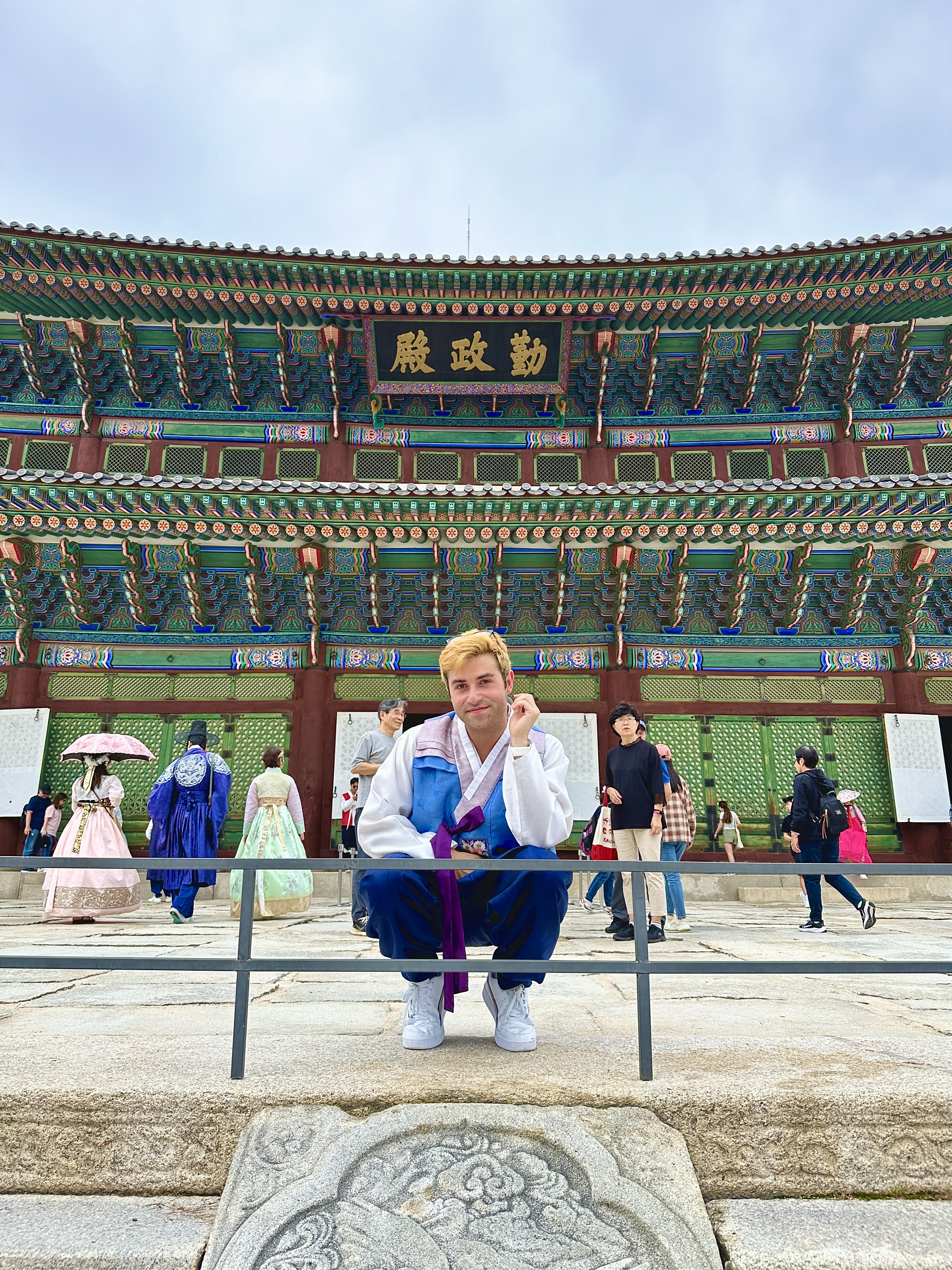 Un altro bel giorno movimentato in quanto siamo andati al bellissimo, come dice il titolo sopra, palazzo Gyeongbokgung – cliccandoci potete vedere il mio video su YouTube. È un palazzo molto vecchio, credo, insomma non faccio storia e non l’ho studiata manco così bene, ma ritorniamo in noi: prima di avere di fronte il palazzone, passerete sicuramente davanti ad una piccola statua chiamata “Gwanghwamun-gwangjang”, carina e fatevi due foto, ma la cosa più bella ancora è che proprio sulla sinistra di questa statua c’è uno stand di signori che ti scrivono qualsiasi cosa vuoi in coreano, e la parte più bella è che è assolutamente gratis – fino a che non prendi la scritta su un foglio di pergamena bello grande e i prezzi partono da 20.000₩, ma secondo me opterete per la versione gratis, a meno che non siete proprio fan sfegatati per l’hangŭl (sistema di scrittura coreana) anche perché se dovete spendere soldi, vi consiglio di spenderli per l’hanbok (vestiti tradizionali coreani). Esatto, dirigiamoci verso il palazzone, ma svoltiamo a sinistra in quanto passerete in una piccola via dove potete noleggiare il vostro vestito tradizionale coreano – ma attenti al prezzo – il primo che incontrerete, io non ci sono manco entrato, nemmeno al secondo e al terzo, ma sono entrato in quello dove c’è scritto “sia uomo che donna 15.000₩” in quanto negli altri so furbi: vi scrivono “a partire da 10.000₩” e poi entrate dentro e solo il cappello costa quella cifra lì. Quindi fidatevi di me e andate da quello lì, poi ovvio se volete provare altri accessori, spenderete di più – comunque noleggierete i vestiti o per due ore o per un giorno interno, vi consiglio due ore perché, perché non è che ci sia molto da fare al palazzo, se però poi volete camminare e fare un giro con l’hanbok, fate voi (non nego che sia carino, ma ricordatevi che le donne sotto avranno i loro vestiti e se fa caldo, fa caldo, mentre agli uomini fanno levare solo la maglia ed io che soffro il caldo, sapete come è andata a finire). Noleggiato il vestito, io sono entrato a palazzo mentre Linda è andata a pagare il biglietto – che è costato 3.000₩, niente insomma – infatti ci sono rimasto malissimo che io ho preso anche i vestiti e pagato 15.000₩ quando potevo entrarci lo stesso per molto meno, ma per lo meno mi hanno fatto un botto di complimenti anche le nonnine del posto e poi è un’esperienza assolutamente da fare. Dopo aver visto tutto il palazzo, gli ultimi 10 minuti a corsa, li ho fatti all’interno del museo gratuito National Palace Museum of Korea – devo dire molto bellino e sono riuscito a fare le foto a tutte le cose più utili a parere mio – quindi esperienza consigliatissima da fare. Dopo aver consegnato le mie bellissime vesti, abbiamo fatto un giro per il piccolo quartiere Chebu-dong, pranzato da Paris Baguette (ormai amico di fiducia) e concluso ritirando la nostra stampa, anzi scritta, coreana alla statua che vi avevo dato prima – vi consiglio appunto di farla dopo così non dovete visitare il palazzo e la città con sto foglio penzoloni in mano. Abbiamo concluso la serata e la cena ritornando allo street food a Myeong-dong in quanto l’altro giorno l’abbiamo visto di fretta e furia, ma stavolta ci siamo dati quasi alla pazza gioia: abbiamo preso 5 palline di cheese balls a 6.000₩ (formaggio fritto con sopra ketchup e mustard), poi Linda, essendo vegetariana, ha assaggiato i tteokbokki a 5.000₩ e devo dire che era una bella ciotolina grande ed infatti Linda dopo quelli era già piena – piccanti al punto giusto – ma io ho preso alla fine, invece, il fantastico corn dog a 5.000₩ vi giuro, di un buono assurdo che ne avrei mangiati altri due. Il mercato di Myeong-dong comunque è bello grande sì, ma in due ore massimo, si riesce a vederlo per bene tutto tutto e vi posso dire che comunque dopo un po’ tutte le bancarelle sono simili alle altre e anche per quanto riguarda i prezzi, so sempre gli stessi. Avvertenza: mai fermarsi alle prime bancarelle che incontrate per il semplice fatto che più in sù, essendo che ci va meno gente, vi danno un po’ di più roba e a volte è anche più saporita perché gli ingredienti, come l’olio per friggere, sono usati di meno – anche se devo dire sono tutti molto molto puliti. Abbiamo concluso poi assaggiando i dragon beard 10.000₩ di un ragazzo che fa abbastanza ridere e che conosceva diverse parole italiane e vi posso letteralmente dire che quei, non so come chiamarli con un nome che ci possa andare vicino in italiano, biscotti ripieni boh, erano davvero una cosa alquanto sublime. Siamo tornati a casa puzzolenti di fritto, stanchissimi, ma contenti.