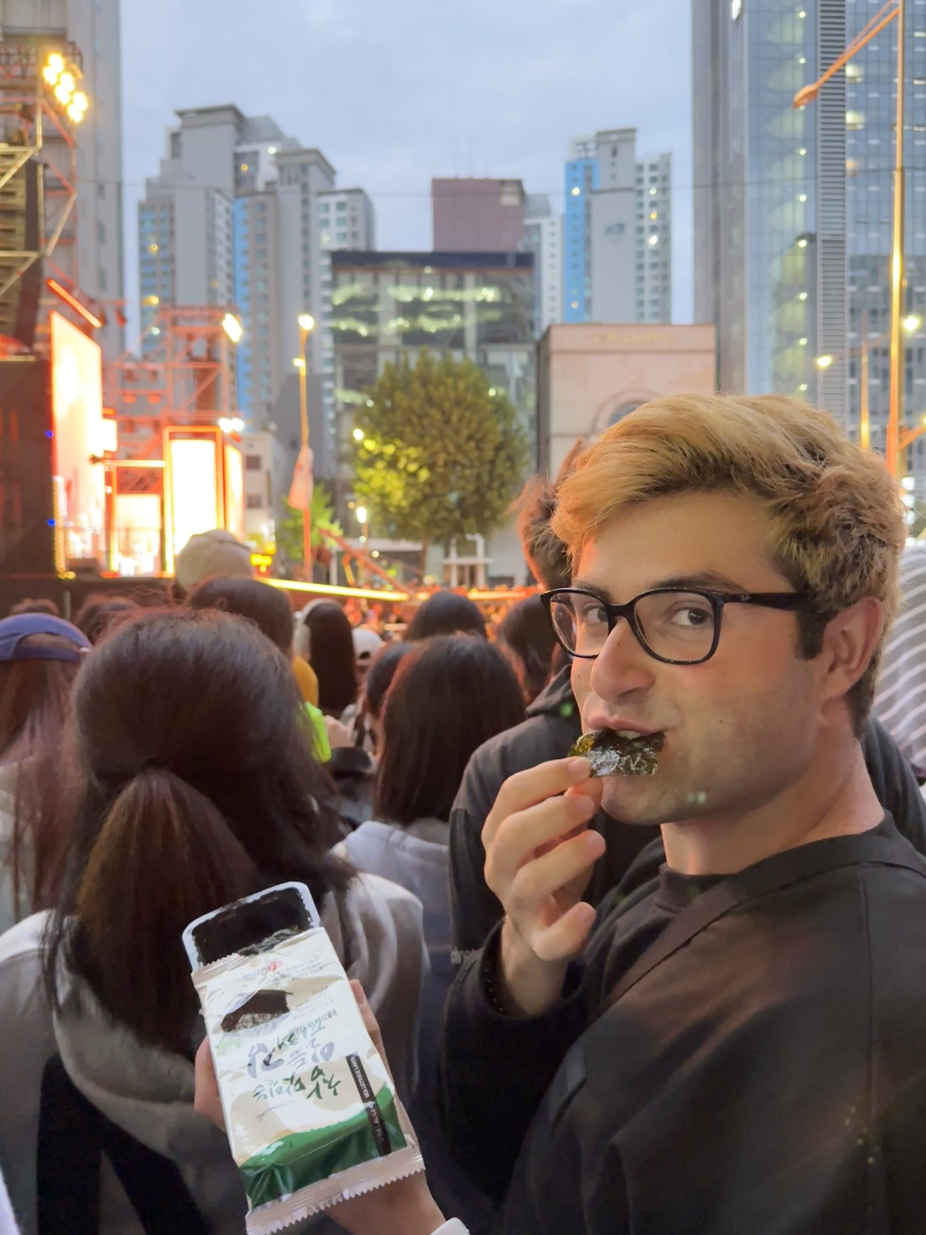 Se pensavate che la mia voglia di cantare fosse finita al karaoke di ieri e di ieri l’altro, beh vi sbagliavate di grosso. Oggi, giorno tristissimo, le uniche che mi avrebbero tirato su il morale sarebbero state le Blackpink e quindi, siamo ritornati un’altra volta a Itaewon, per l’ultima volta di questo lunghissimo viaggio, a prenotare per 30 minuti la nostra piccolina stanzina bellina bellina – stavolta davanti a tutti – e bada-bing, bada-boom-boom-boom, abbiamo preso 100 a As If It’s Your Last (li da proprio a caso i voti eh ahahah) e abbiamo concluso cantando “Macarena”. Oggi non me ne volevo proprio andare da qui però alla fine, sì, siamo andati a Myeongdong per far nutrire Linda l’ultima volta dal suo ormai ristorante vegano di fiducia e probabilmente saremmo potuti essere i clienti del mese da quante volte ci hanno visto girare a destra e a manca. Io non ho mangiato perché essendo che ero triste, oggi – ma come benissimo tutti gli altri giorni – mi sono sfondato al buffet dell’hotel. Finalmente passiamo alla parte più importante, quella che sognavo sin dall’inizio: direzione concerto K-Pop. Io non so perché, ma mi aspettavo poca gente perché era brutto tempo, faceva freddo e stava iniziando a piovere e secondo voi, c’era davvero poca gente? No, che domande. Una ragazza mi aveva rattristato dicendomi che non avrei potuto partecipare al concerto perché non avevo il biglietto che è andato sold out dopo la sua pubblicazione, ma io sapevo che era gratis per gli stranieri perché era stato fatto per incentivare il turismo e quindi alla fine ho fatto come mi pare e mi sono messo in un angolino assieme a tutti gli altri con una vista – insomma – onesta dai. Comunque ve ne rendete conto che è il mio primissimo concerto K-Pop dal vivo (ho visto solamente quello delle Blackpink a gennaio del 2021, ma era online quindi niente di che) e più che altro, primo concerto proprio in Corea a Seoul per giunta! Contentissimo! Ho visto finalmente dal vivo gruppi che conosco e che seguo: hanno aperto il concerto le STAYC, per poi continuare con i BOYNEXTDOOR, Fromis_9, ATEEZ, le aespa, gli NCT DREAM ed infine Zico. Io ho urlato come una vacca per le aespa e gli Ateez, anche se non nego che ho urlato in continuazione per tutti gli altri e mi sono sorpreso di Zico in quanto conoscevo un botto delle sue canzoni e non sapevo minimamente che erano sue. Ah, vi posso letteralmente dire che le urla più potenti erano per gli NCT DREAM e le aespa. Finalmente ho visto dal vivo Karina AAAAAAAAA. Concerto davvero comunque stupendo e la chiusura coi fuochi d’artificio era proprio la candelina sulla torta. Me li ricorderò per sempre, come il selfie che ho fatto con una ragazza cinese che non ha fatto altro che urlarmi nell’orecchio e come anche la lunghissima fila infinita per tornare all’hotel… ma dopo tutto… ho visto… Karina. E qui, si conclude l’avventura col concerto che ho messo su YouTube, vi voglio bene ❤️
