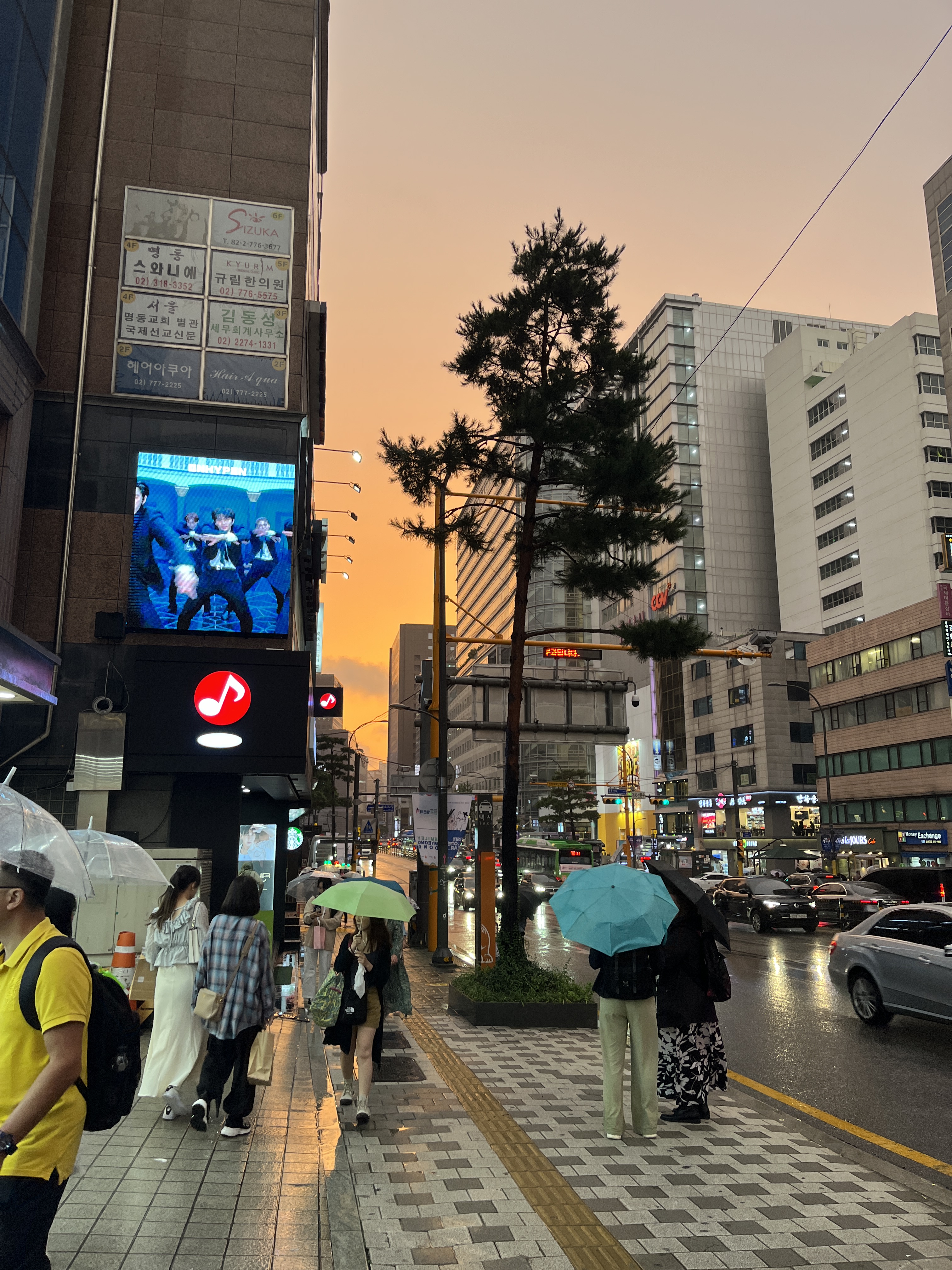 Ci siamo svegliati con la pioggia in questo giorno però un poco culturale, ma semplice. Infatti siamo andati coi nostri bellissimi ombrelli trasparenti pagati 2,50€ da Daiso al Museo della guerra e, santo cielo, quanto è immenso. Mi è garbato parecchio e ho apprezzato che ci siamo anche noi con gli aiuti della Croce Rossa e per la prima volta mi sono appassionato alla storia in vita mia, ho letto tutto molto volentieri davvero. Dentro potete lasciare anche una vostra nota e io ovviamente non ho fatto altro che scrivere “Sono contento di essere qui, baci baci dall’Italia” scherzo, saluto e scrivo sempre con educazione ahaha. Una volta usciti fuori, c’era un piccolo evento dove facevano lanciare delle frecciette a dei bambini e chi vinceva, vinceva un pacchetto di snack che danno ai militari e anche io e Linda abbiamo partecipato e la ragazza appena ci ha visto è andata in errore di programmazione perché non sapeva l’inglese e non sapeva come spiegarci il gioco, ma ce l’ha fatta lo stesso ed entrambi abbiamo vinto quei biscotti, un poco poco dolci, ma buoni. Per pranzo siamo andati a mangiare dei piccoli fagottini di tofu con dentro riso e carne, ma ci sono anche di pollo, tonno e uova e anche qualche piccola opzione vegetariana – personalmente posso dirvi che mi sono innamorato di sti piccolini fagottini che non ci ho visto e ne ho mangiati a bizzeffe (ovviamente, eravamo di nuovo al Lotte Young Plaza), poi abbiamo fatto un altro giro dai Kakao Friends perché ero tentatissimo a comprare qualcosa come il caricatore portatile di Ryan, ma poi mi so detto “compralo quando ci ritornerai la prossima volta, magari a Busan” chissà… Per la prima volta siamo ritornati in hotel a fare il nostro primo pisolino da quando siamo arrivati ben 12 giorni fa, e manco a farlo apposta, ci siamo addormentati di brutto e svegliati però carichi perché avevamo un appuntamento con Ortensio e la sua famiglia ad Itaewon. Siamo scesi alla fermata dell’hotel Hamilton e, mammina, quanta gente! Strapiena e bellissima, ci sono anche tantissimi stranieri che lavorano come “per favore entra nel nostro locale, dai!” una cosa del genere, non so che lavoro sia, tipo “l’accalappia persone nei locali” una cosa del genere. Noi siamo andati in un piccolo locale dove, di quel che mi pare di aver capito, potete giocare a tantissimi giochi e giochini come birra-pong oppure a carte o prendi le palline con l’ippopotamo, insomma tanti giochi ecco – spese per le bevute contenute, tipo sui 8.000/11.000₩. Io mi sono davvero divertito un botto, e abbiamo concluso la serata sulla cima di Itaeown dove ho potuto ammirare la bellissima vista anche della Seoul Tower di notte ed inutile dire, per la millesima volta, stupendo. L’unica cosa un poco triste è che è parecchio difficile vedere le stelle di notte, c’è parecchio inquinamento luminoso. Comunque sia, siamo tornati a casa più che felici.